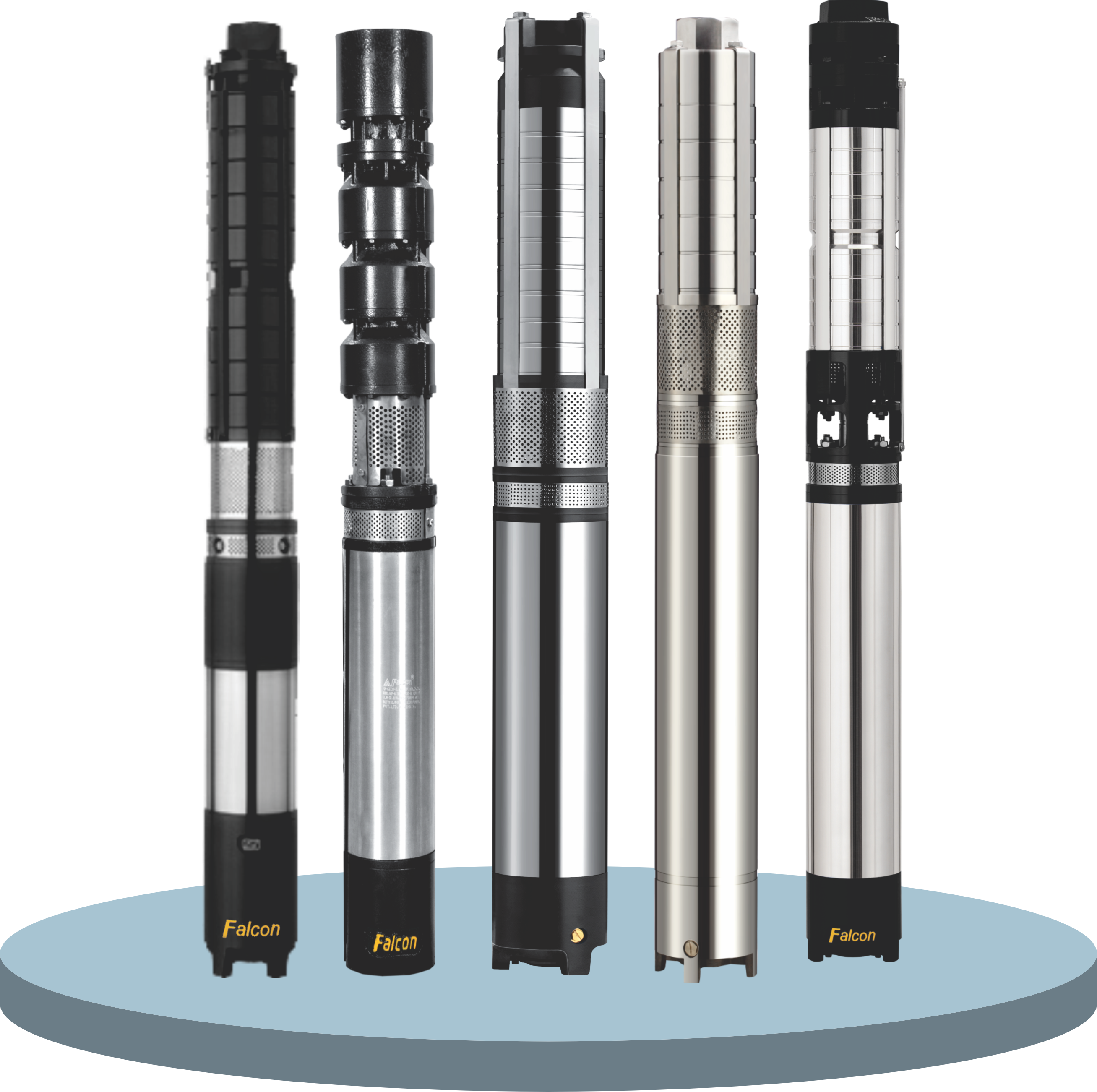 The Falcon 'V6'submersible pump series, which are 6-inch diameter (150mm) pumps primarily designrd for agricultural and industrial borewell applications. They are built for high efficiency and durability.